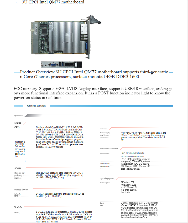 3U CPCI Intel OMM77motherboard