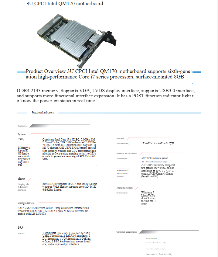 3U CPCI Intel QM170 motherboard