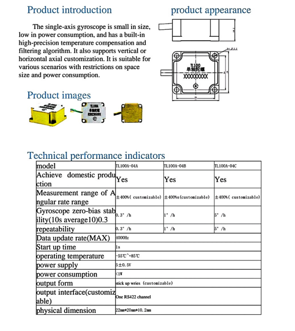 The single-axis gyroscope is small in size, low in power consumption, and has a built-in high-precision temperature compensation and filtering algorithm. It also supports vertical and horizontal axial customization. It is suitable for various scenarios with restrictions on space size and power consumption.